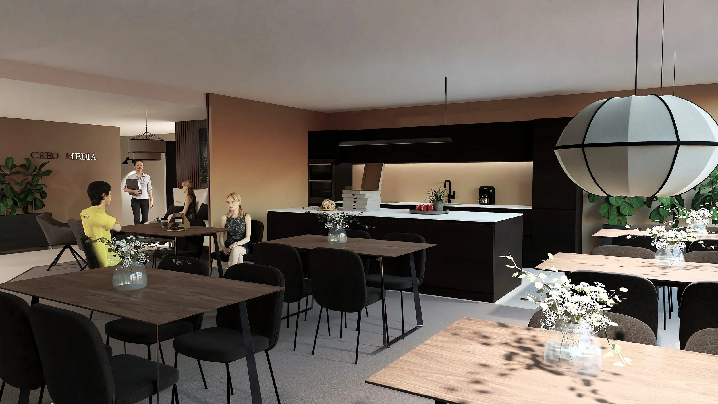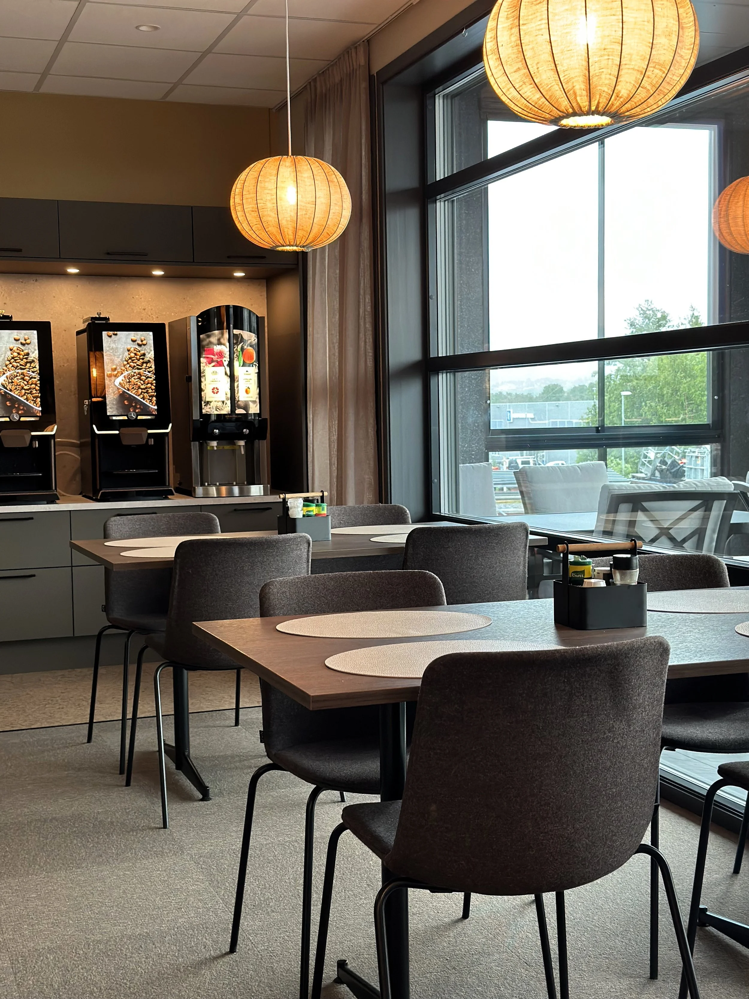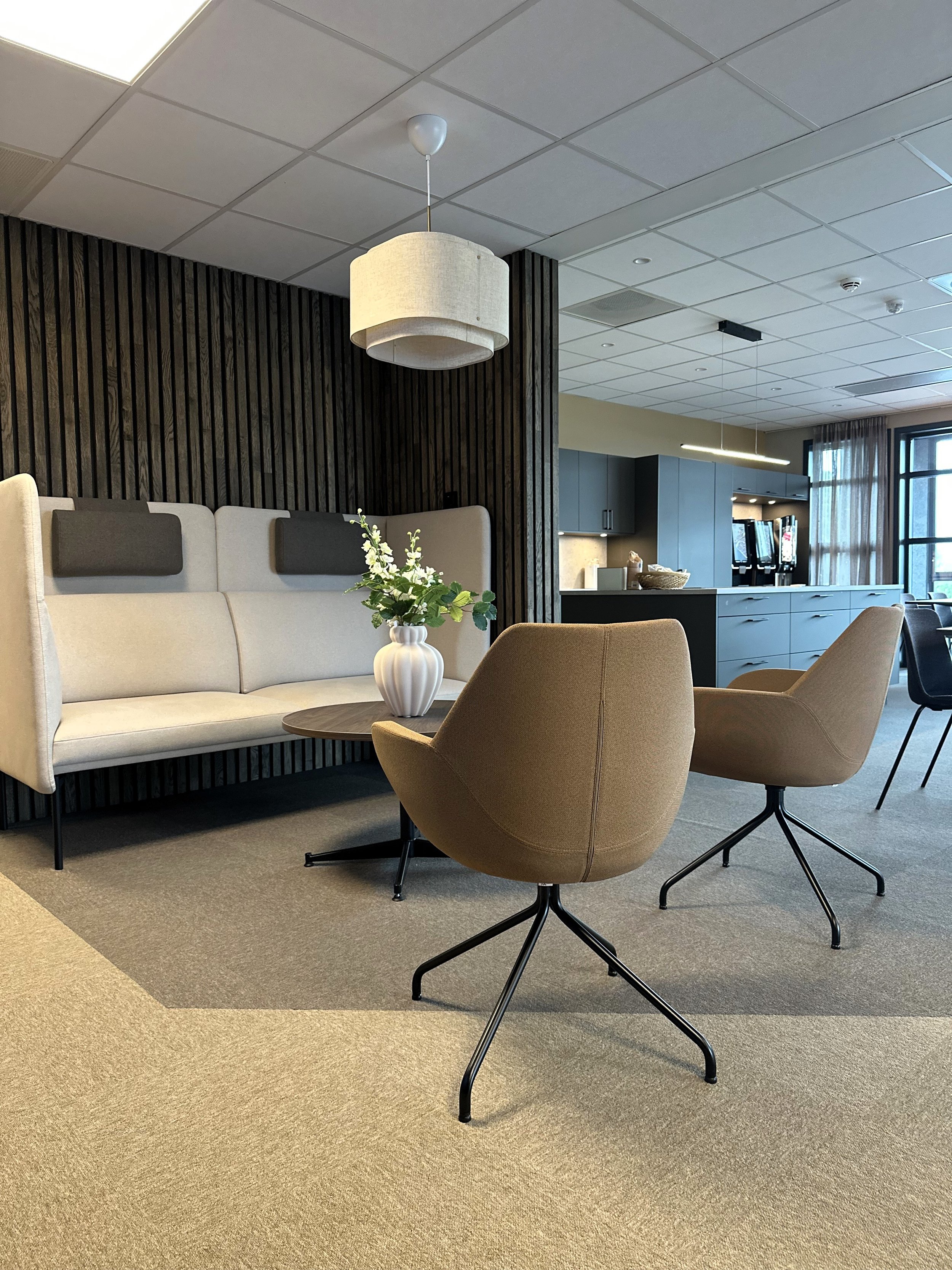 Fagtrykk i Alta kontakta oss og ville ha hjelp til fornying av de sosiale sonene i 2 etg. Nye farger, møbler og lamper gjorde dette til et gjennomført og moderne lokale. Glassvegg ble fjernet og vi fokuserte på farger og materialer som ga rommet mer liv og varme. Se gjennom våre 3D bilder, bilde før oppussing og ferdig resultat under. Takk for jobben og takk for tilliten!