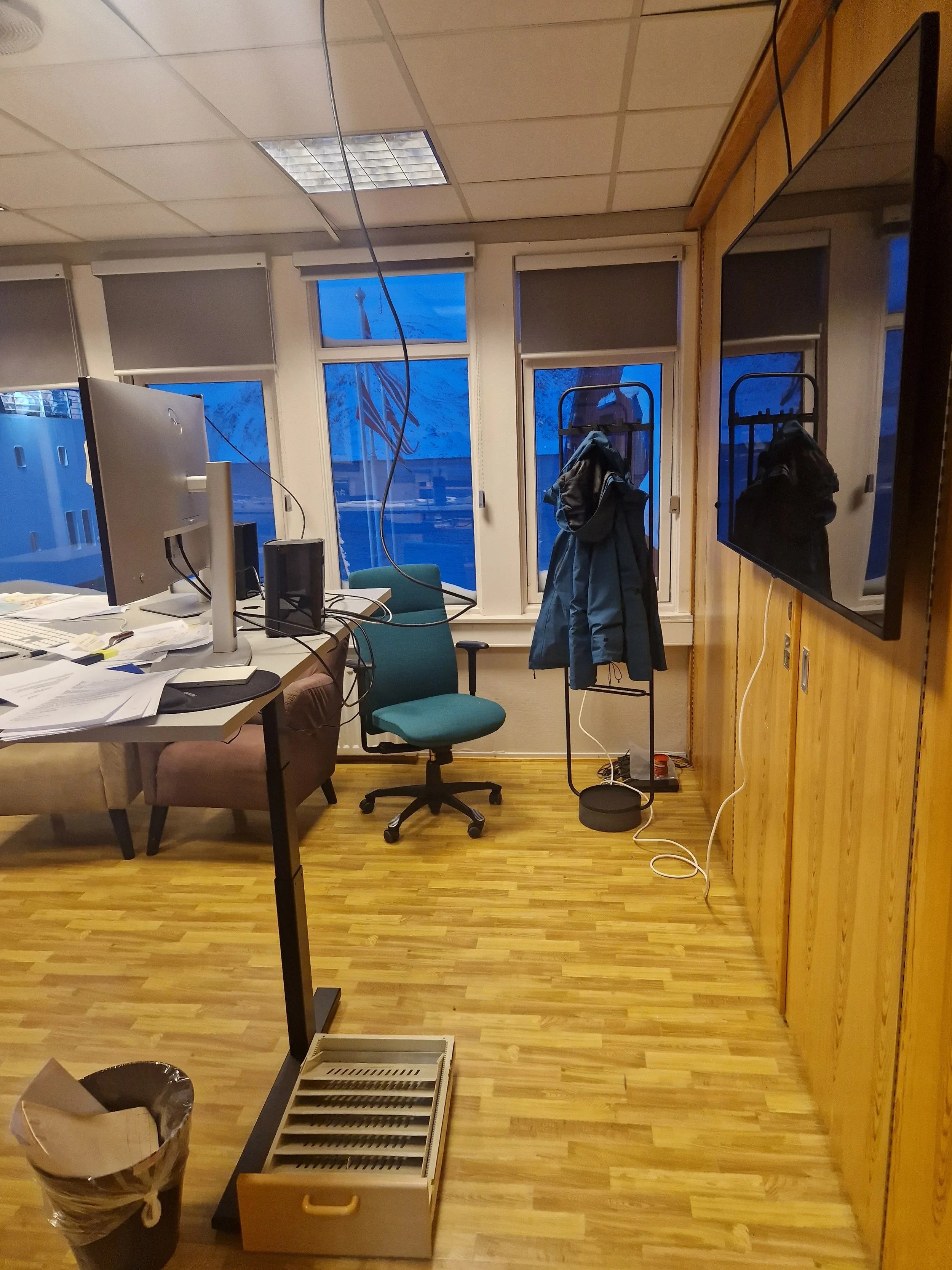 Vinteren 2024 fikk vi en spennende jobb i Honningsvåg! Nordkappregionen havn ville ha oss utover for å se på løsning for deres kontorlokaler som trengte en oppussing. Vi tegnet om rommene og fikk inn flere kontorer, en sosial sone og kaffekrok. Høsten 2025 pusset de opp, og de har sendt oss bilder av resultatet. Takk for jobben og takk for tilliten!